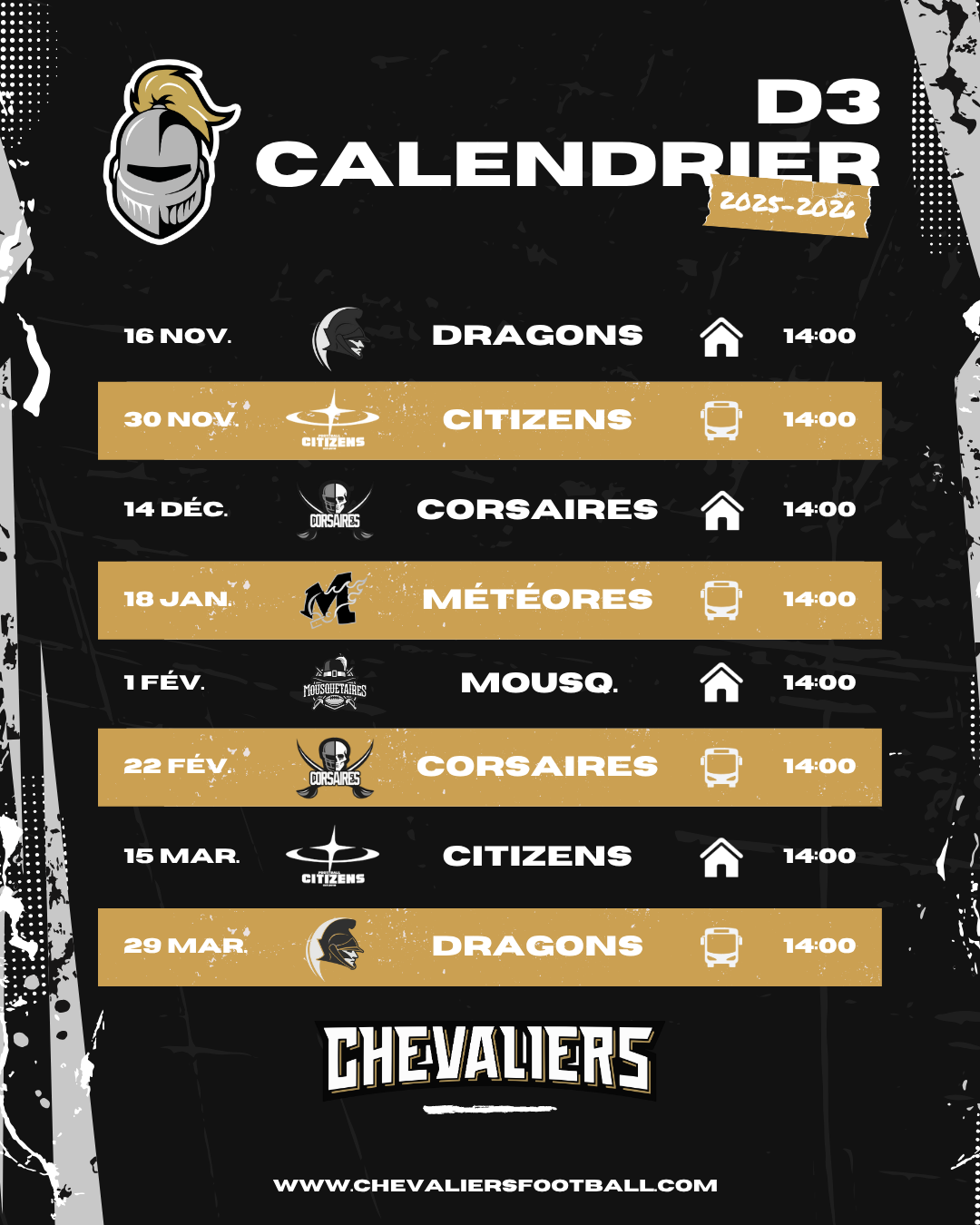 Le nombre de licenciés séniors football américain n’étant pas suffisant pour joué à 11, notre équipe séniors devra joué à 9 contre 9. Les équipes adverse devront aussi se plier à cette contrainte.